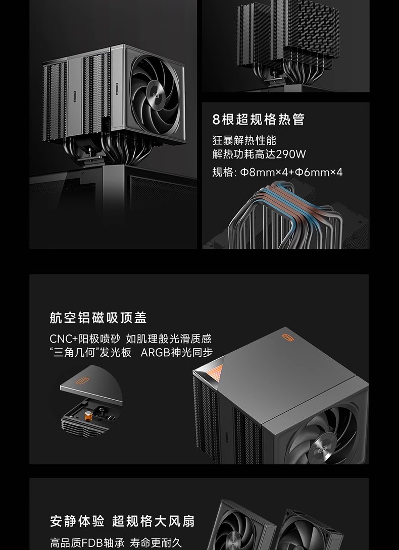 超频三RZ820散热器CPU风扇大双塔8热管电脑塔式风冷1700/1150/AM4