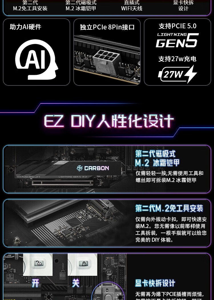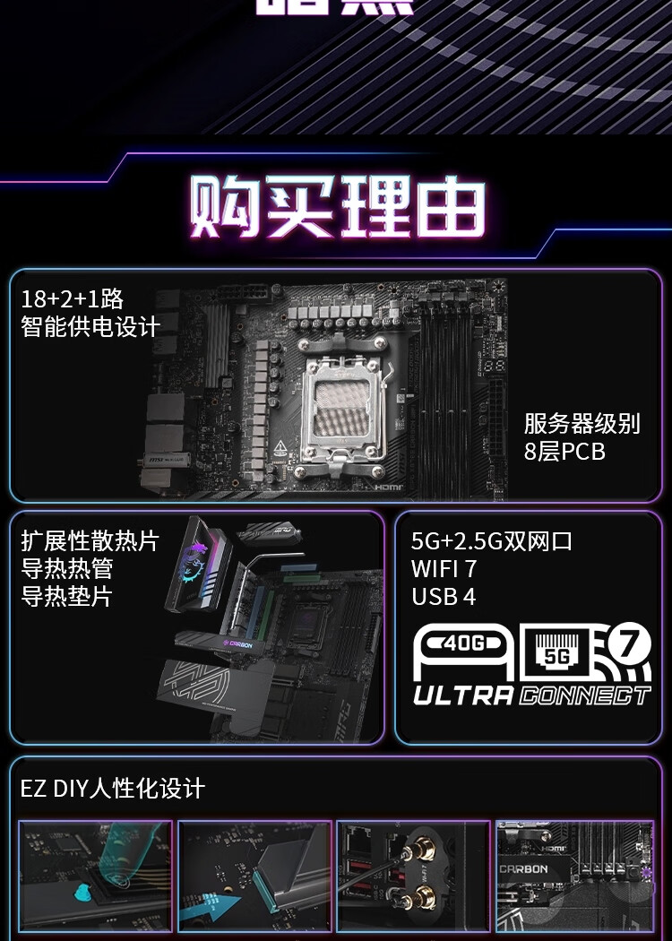 微星MPG X870E CARBON WIFI DDR5暗黑主板支持CPU9900X3D9950X3D